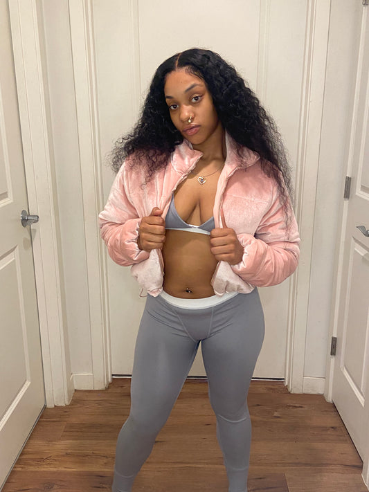 Velvet puffer jacket pink